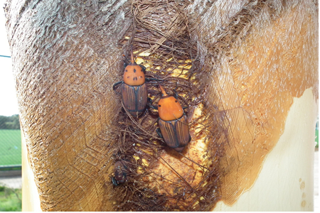 Aydın ve sahil bölgelerde etkili olan kırmızı palmiye böceği turistik bölgelerin sembolü olan palmiye ağaçlarını kurutuyor.