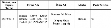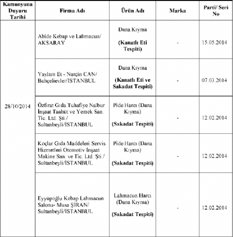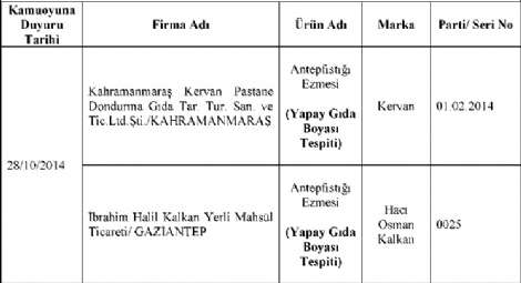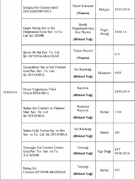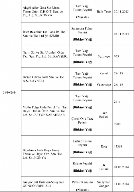 Taklit ve tağşiş yaptığı belirlenen işletmeler ve ürünlerinin parti numaraları Bakanlığın internet sitesinde açıklandı.