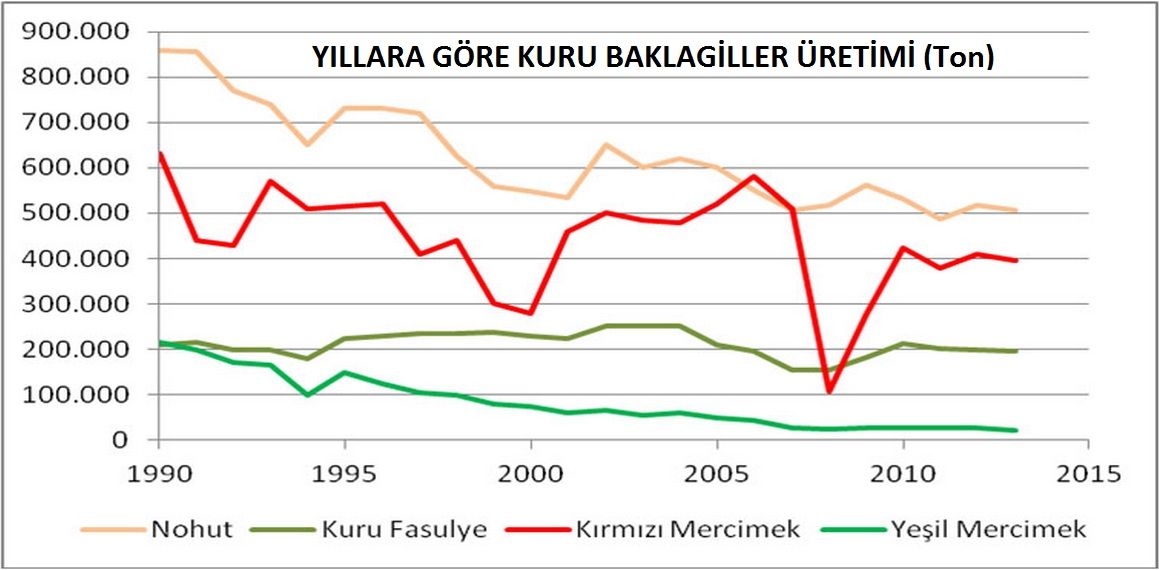 1990'lı yıllarda 20,2 milyon dekar alandan 2 milyon tonun üzerinde bakliyat üretimi gerçekleştiren Türkiye, kendi iç talebini fazlasıyla karşılıyordu. Hatta üstüne üstlük bir de ihracat yapıyordu.