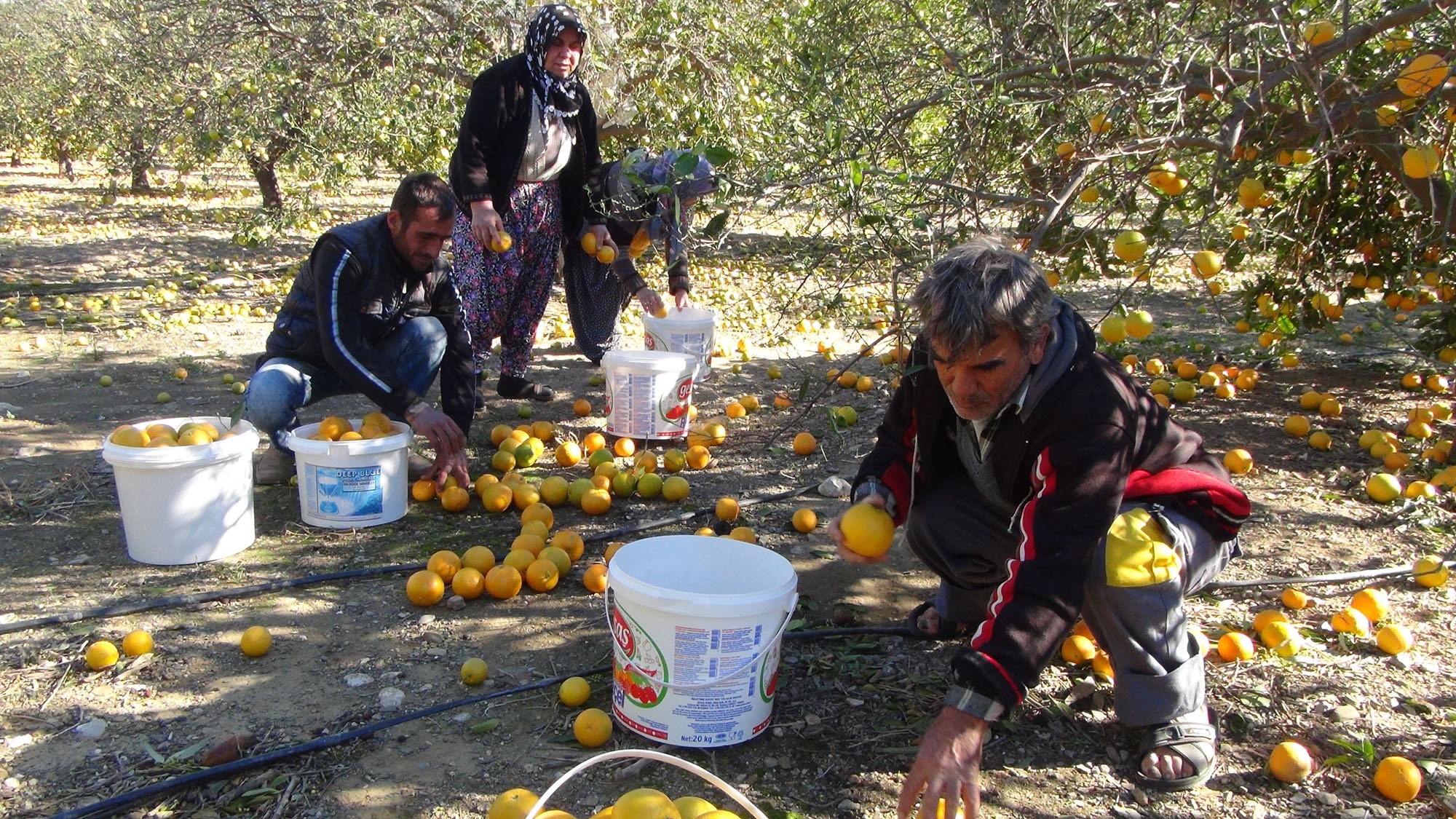 Hayatı Koruma Derneği Başkanı, aynı zamanda çiftçi Arslan Eyce'nin 75 dönümlük bahçesinde hasat edilmeyi beklenen 100 ton portakalın yaklaşık 90 tonu yere döküldü. Dökülen portakallar ise çürüyüp ağaç köklerine zarar vermemesi amacıyla işçiler tarafından toplanıyor.