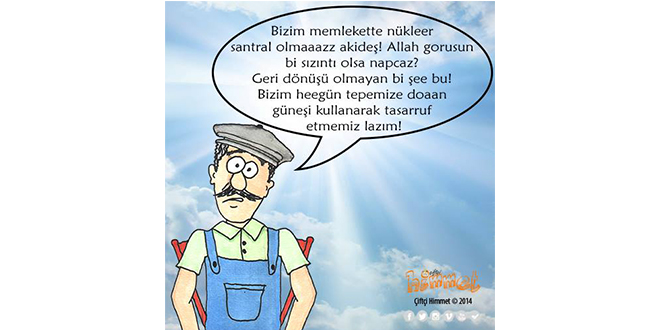 BİZİM MEMLEKETTE NÜKLEER SANTRAL OLMAAAZZ AKİDEŞ! ALLAH GORUSUN Bİ SIZINTI OLSA NAPCAZ? GERİ DÖNÜŞÜ OLMAYAN Bİ ŞEE BU! BİZİM HEEGÜN TEPEMİZE DOAAN GÜNEŞİ KULLANARAK TASARRUF ETMEMİZ LAZIM! 16.04.2015 2.317 gösterim 3 yorum PAYLAŞ ! tweet