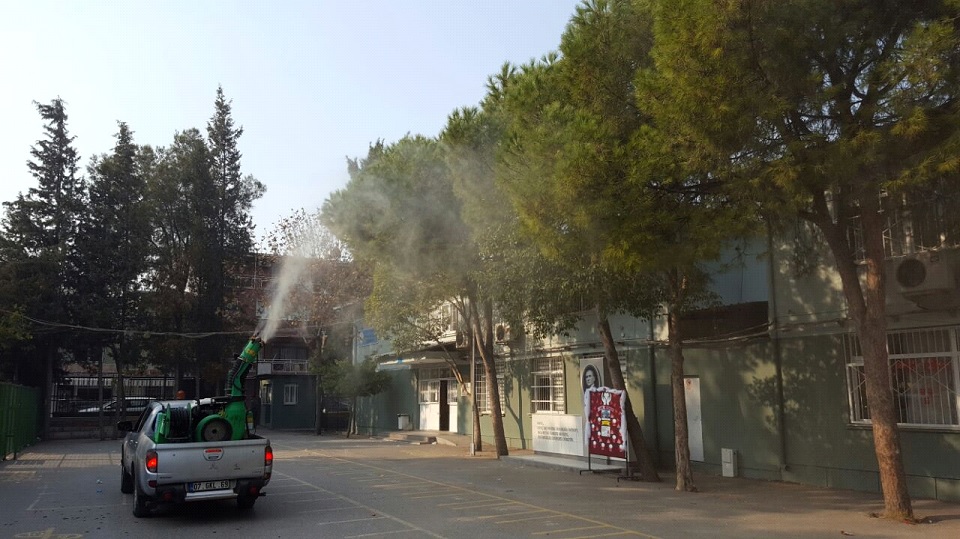 Karabağlar Belediyesi ilçe sınırları içerisinde bulunan okul, park ve yollardaki çam ağaçlarına zarar veren çam kese tırtılını önlemek amacıyla ilaçlama çalışmalarına başladı. Uygulama kapsamında canlılara ve doğaya zarar vermeyen ilaç kullanılıyor.