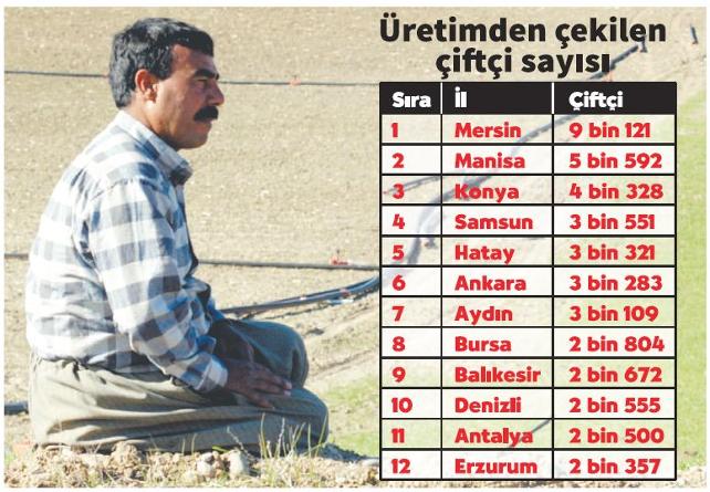 Bir yandan üretim maliyetlerinin artması bir yandan iklim değişikliği 98 bin 409 çiftçiyi üretimden kopardı. Üretimden çekilen çiftçi sayısı bakımından Akdeniz Bölgesi ilk sırada yer alırken onu Orta Anadolu izledi.