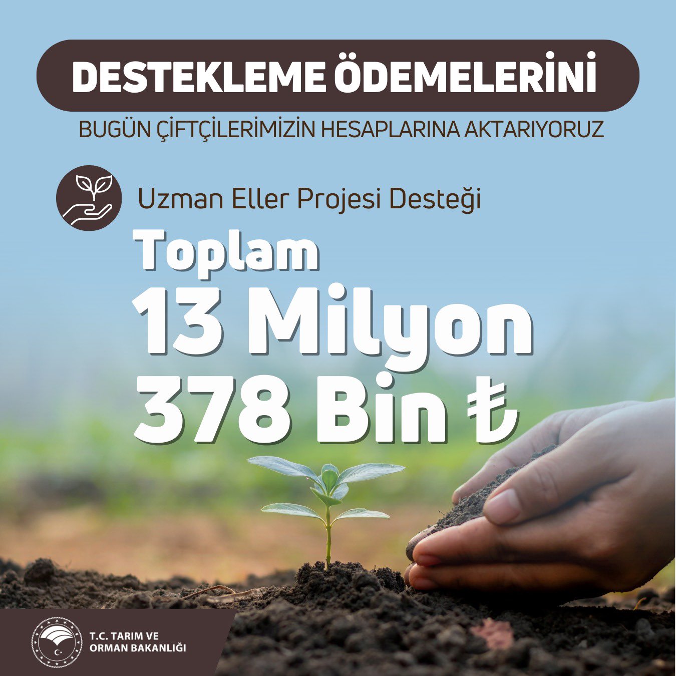 Tarım Bakanı; 13 milyon 378 bin TL tarımsal destekleme ödemesinin çiftçilerin hesaplarına aktarıldığını açıkladı.