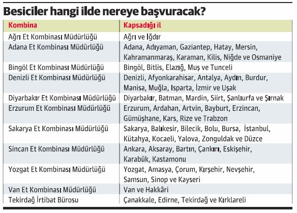 ESK'nın açıklamasına göre, yapılan başvurularda 40 ile 500 başa kadar kapasitesi olan işletmelerin talepleri kapasitelerinin yüzde 50' si oranında karşılanacak. Ancak, 500-1000 baş arası kapasiteye sahip olup kendi imkânları ile ithalat yapamayan işletmeler kapasitelerinin yüzde 50'si oranında Et ve Süt Kurumu'na talep başvurusunda bulunabilecekler. Aynı gerçek veya tüzel kişilik adına aynı işletme numarasıyla birden fazla başvuru kabul edilmeyecek. Böyle bir durumun tespit edilmesi halinde sadece ilk başvuru dikkate alınacak.