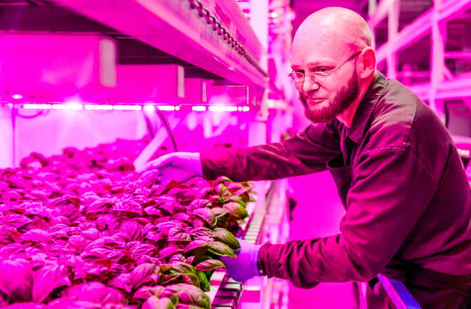 Yenilikçi şirketlerden biri Urban Crops. Bu tesislerde topraksız (hydroponic) bir üretim modeli kullanılıyor. Direkt bitkilere bağlı bir yöntem ile özel besinler ve minerallerle bitkiler besleniyor. Bu teknik sayesinde normalde 500 m2 alana ihtiyaç duyulacak kadar üretimi 50 m2 alanda yapabiliyorlar. Ürünlerin daha iyi büyüyebilmesi için led mor ışıklar geliştirilmiş ve en iyi büyüme ortamı tesis edilmiş durumda. Tabi şirket bu işte tek başına değil bir çok farklı rakip girişim hayata geçmeye başlamış durumda.