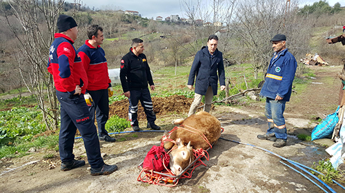 Sedyeden düşmemesi için bağlanan dana, itfaiye ekiplerince taşınarak, patika yola çıkarıldı. Kamyonetle ahıra götürülen dana, Ereğli Belediyesi Veteriner İşleri Müdürlüğü ekipleri tarafından tedavi edildi.