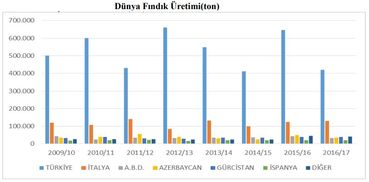 Dünyadaki toplam fındık üretiminin yüzde 65-70'ini Türkiye tek başına gerçekleştiriyor.