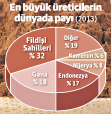 Dünya üretiminde yüzde 18'lik payı ile Fildişi Sahilleri'nden sonra ikinci sırada bulunan Gana'nın arzının, olumsuz hava şartları ve son zamanlarda derinleşen enerji krizi nedeniyle aksamaya başlaması son bir ay içinde fiyatları yüzde 10 yükseltti<br />
