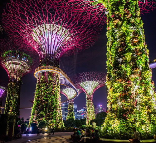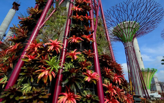Singapur'un "Marina Bay" olarak adlandırılan bölgesinde yeni geliştirilen bir projeyle teknoloji ve bahçeler bir araya getirildi. 101 hektarlık alan yeniden yapılandırıldı ve güneş enerjisiyle elektrik üreten dev yapay ağaçlar da kullanıldı. Şehirdeki bina yoğunluğuna rağmen geliştirilen bu yeşil alan sayesinde amaç bahçe içinde bir şehir yaratmayı amaçlıyor. Söz konusu bu yeşil bahçe dünyanın dört bir tarafından 226 bin bitki ve çiçeğe de ev sahipliği yapıyor.