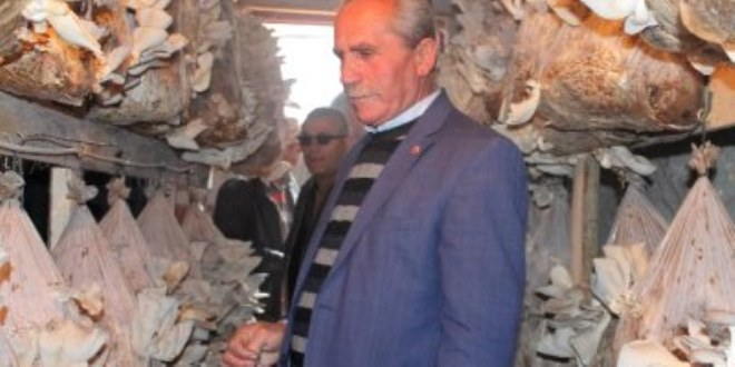 Vali Kılıç, Çarıklı köyünde İstiridye mantarı yetiştiren üreticileri ziyaret ettikten sonra mağaralarda yetiştirilen mantarların hasadını yaptı.