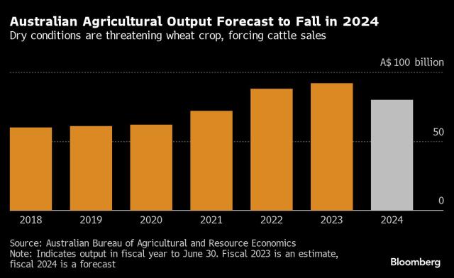 Hükümet, kuraklık ve düşen emtia fiyatları nedeniyle, 2024 Haziran ayına kadar tarımın üretim değerinde yüzde 14'lük bir düşüş yaşanacağını tahmin ediyor, bu da değeri 80 milyar Avustralya Doları'na düşürecek. İklim değişikliği, uzun vadede tarımı daha da zorlaştırıyor. Ortalama yağış miktarı son yarım yüzyılda en az yüzde 15 azalırken, orman yangınları mevsimi daha uzun ve daha yoğun hale gelmiştir.
