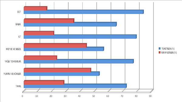 Balık ürünlerinde israf oranı yüzde 35 seviyelerinde iken ette bu oran yüzde 21 civarında. Süt ve süt ürünlerinde ise israf oranı yüzde 16 olarak dikkat çekiyor.