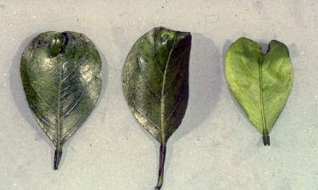 Daralmış ufalmış ve kayık şeklini almış yapraklar serin ve ılıman iklim koşullarında ve ağacın alt bölgelerinde görülür.