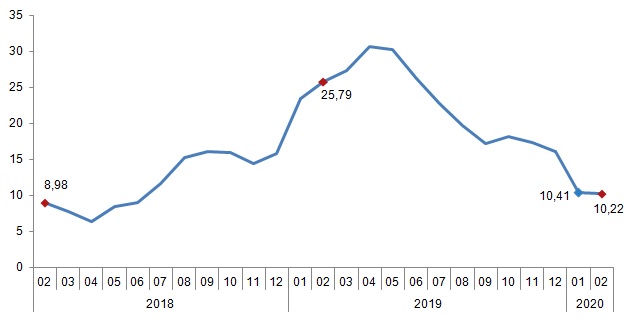 Tarım-ÜFE yıllık değişim oranı (%), Şubat 2020