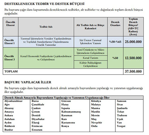 Gıda Tarım ve Hayvancılık Bakanlığının ilgili kuruluşu olan Tarım ve Kırsal Kalkınmayı Destekleme Kurumu (TKDK), Türkiye Cumhuriyeti adına Avrupa Birliği'nin Katılım Öncesi Mali Yardım Aracı olan IPA'nın Kırsal Kalkınma Bileşeni kapsamında uygulanacak yatırımlara ilişkin 8.10.2015 tarihinde On Beşinci Başvuru Çağrı İlanına çıkmış bulunmaktadır.