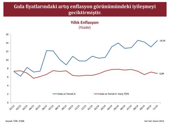 Gıda fiyatlarındaki artış enflasyon görünümündeki iyileşmeye engel oldu.