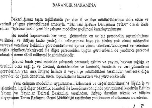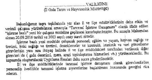 Bakanlık il ve ilçelere yazılar gönderilmeye başlandı. Gönderilen yazılarda personelin ivedilikle tarımsal işletme ziyaretlerine başlaması gerektiği belirtiliyor.