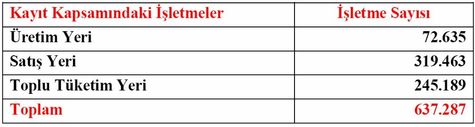 Bunun yaklaşık 72 bini üretim yeri, 319 bini satış yeri ve 245 bini de toplu tüketim yeri olarak kayıtlara girmiş durumda.