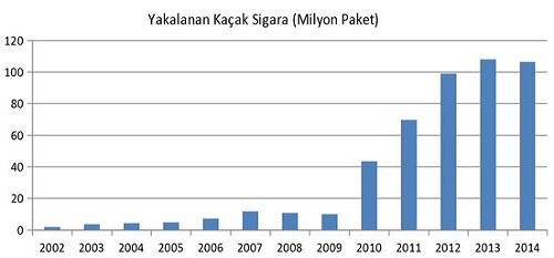 Son 15 yılda ilk defa 2008-2011 yılları arasında yüzde 15'lik bir düşüş gösteren sigara tüketiminin 100 milyar adedin altına indiğine dikkat çekilen raporda, tüketimin 2012 yılında 8 milyar adetlik artışla tekrar 100 milyar sınırına dayandığı ve 2015 yılı itibarıyla 103,2 milyar adede yükseldiğine dikkat çekiliyor.