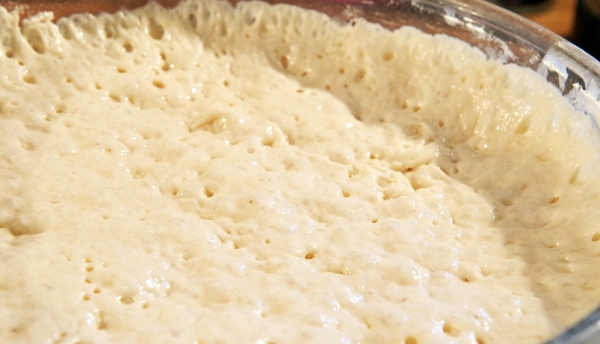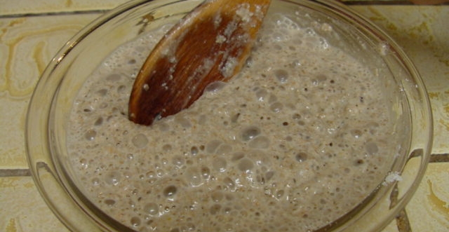 Dördüncü gün, karışımın üzerindeki gözler büyümüş ve maya yer yer kabarıp köpüklenmiştir. Hafif bir ekşi koku da gelmeye başlayacaktır. Yine çeyrek bardak un ile çeyrek bardak su ilâve edip tahta kaşık ile karıştırıp beklemeye bırakın.